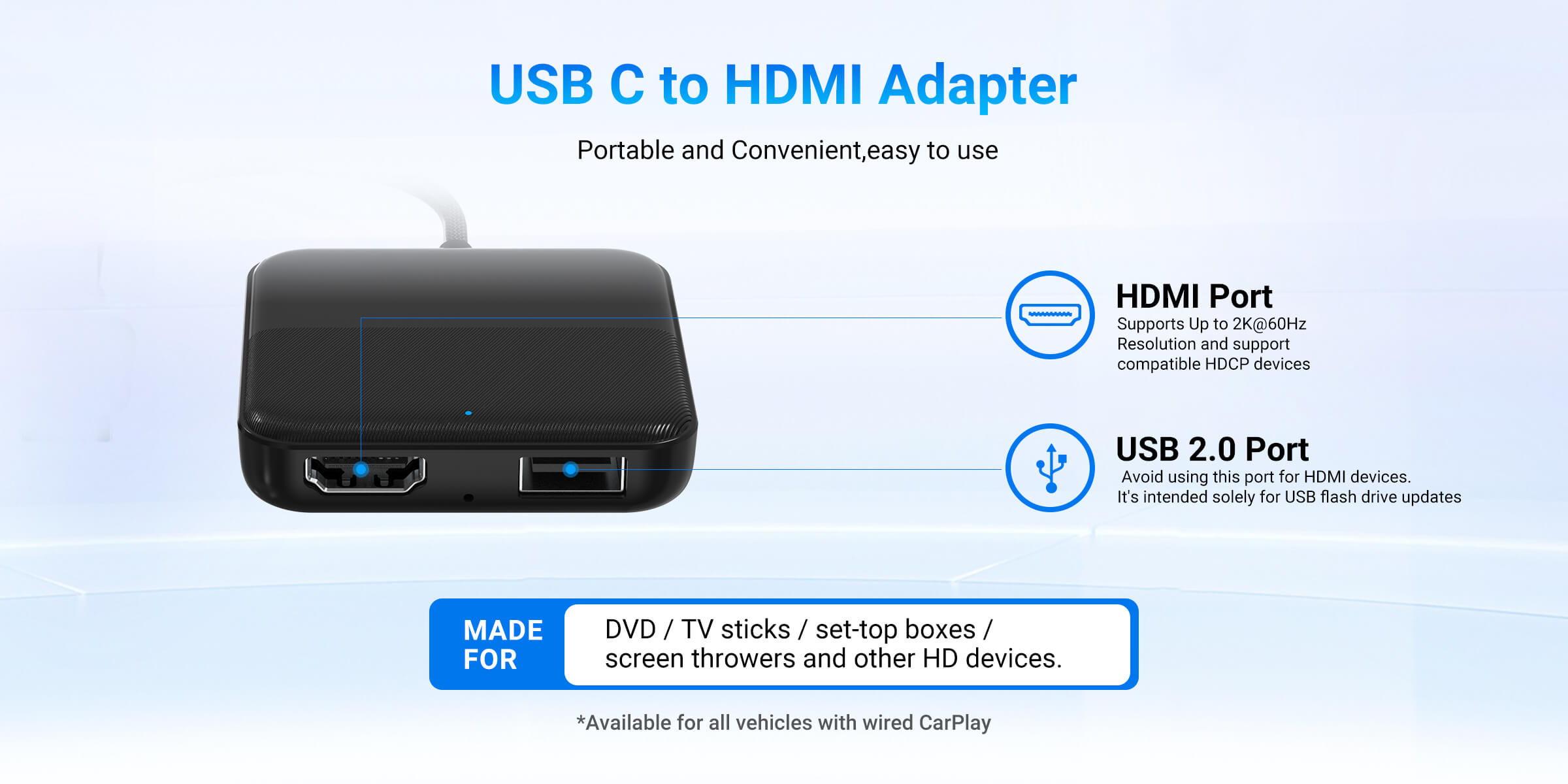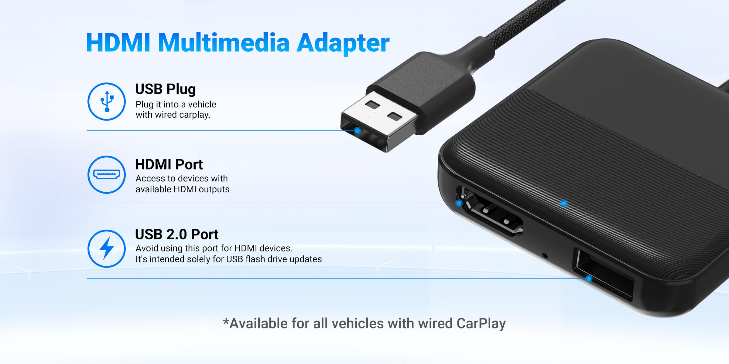 *The Car TV Mate adapter is specifically designed for cars, catering to vehicles equipped with factory wired CarPlay.