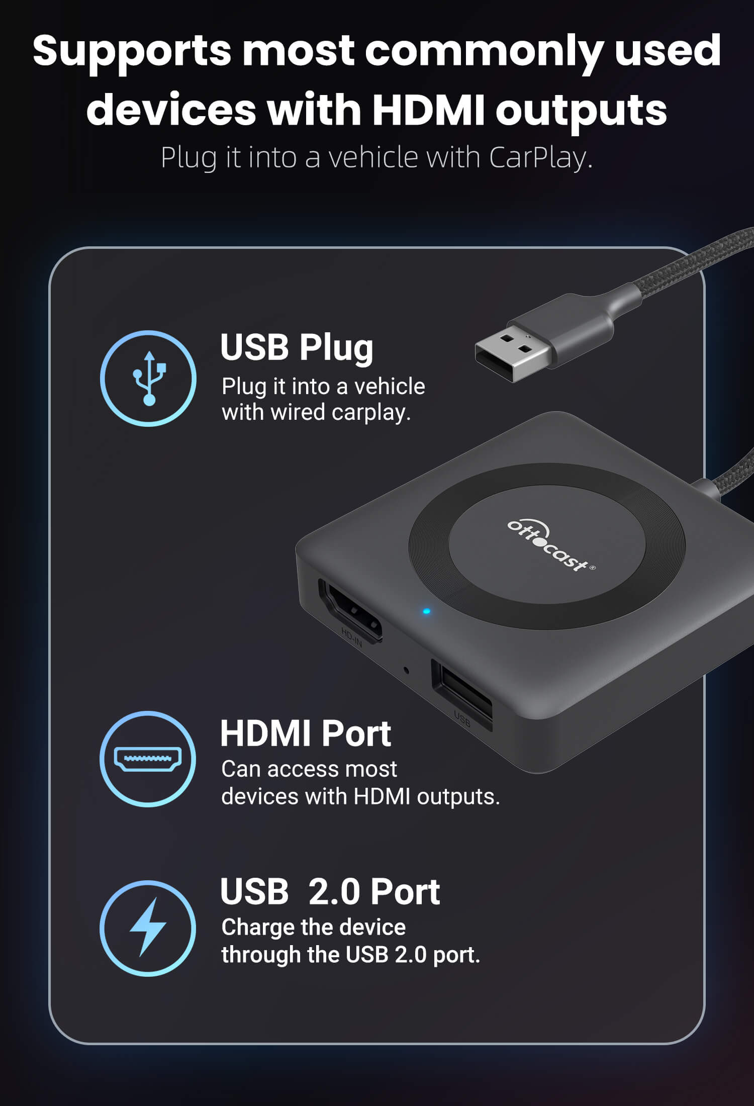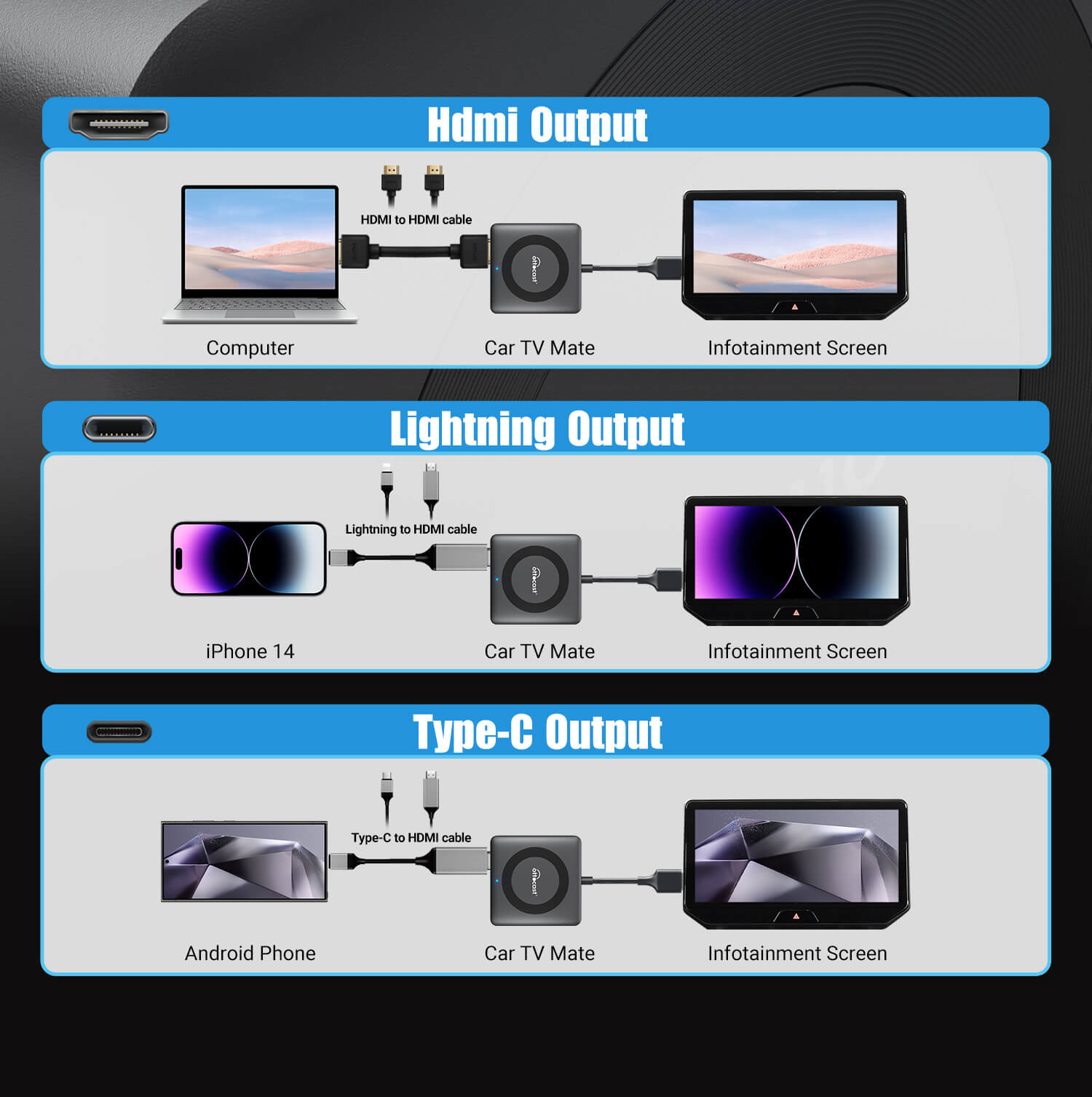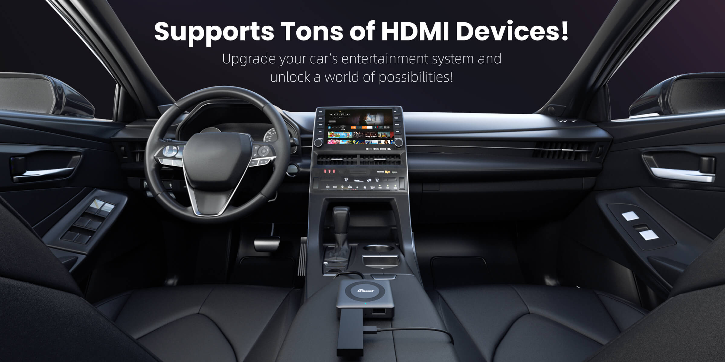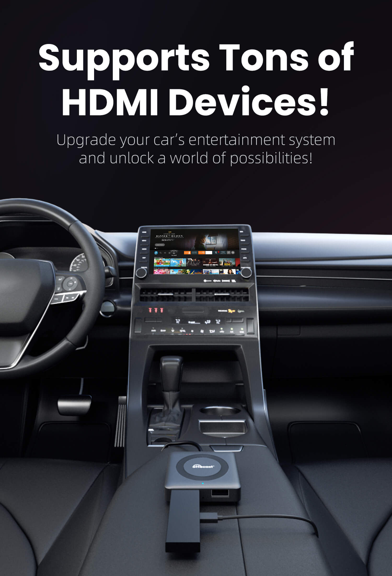 💪 Simply plug in devices with HDMI outputs, such as game consoles, set-top boxes, and screen throwers, to transform your car into an entertainment hub